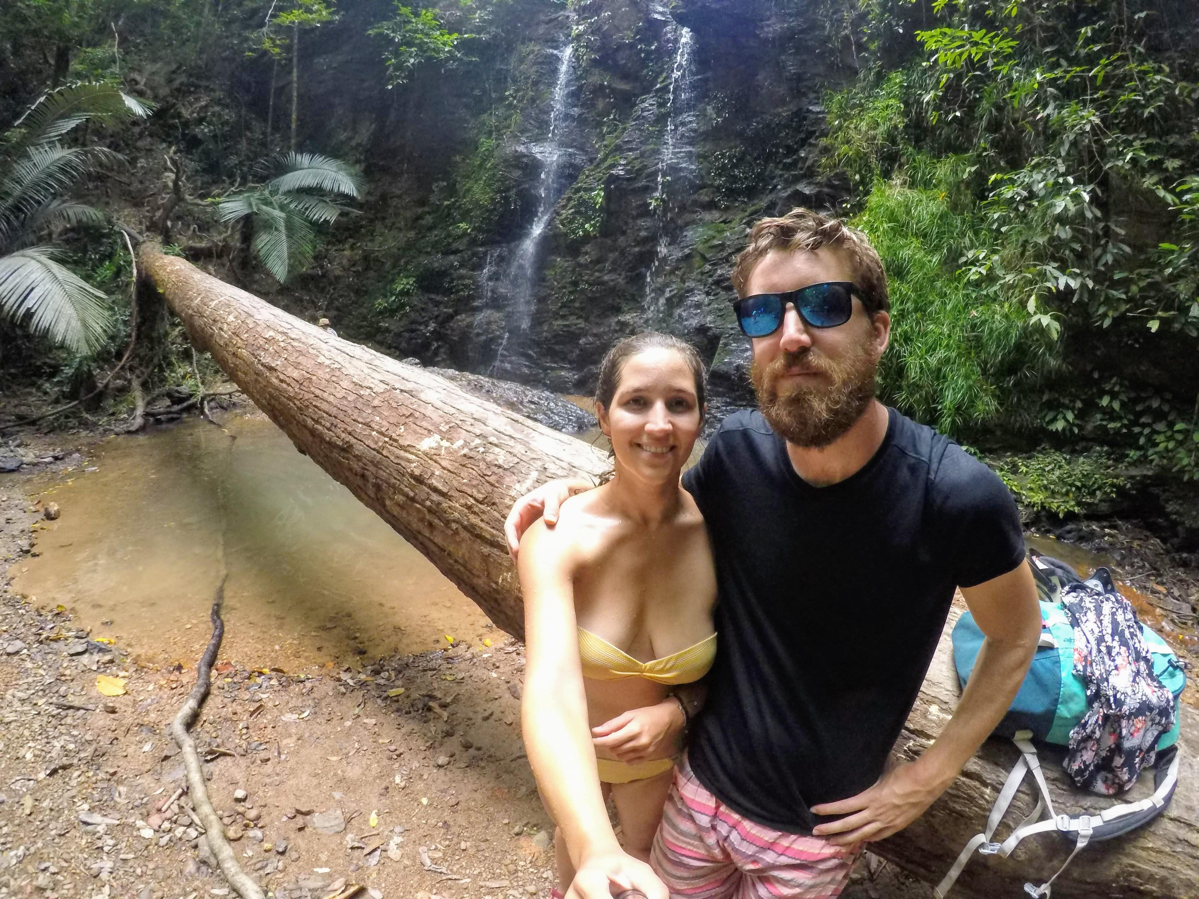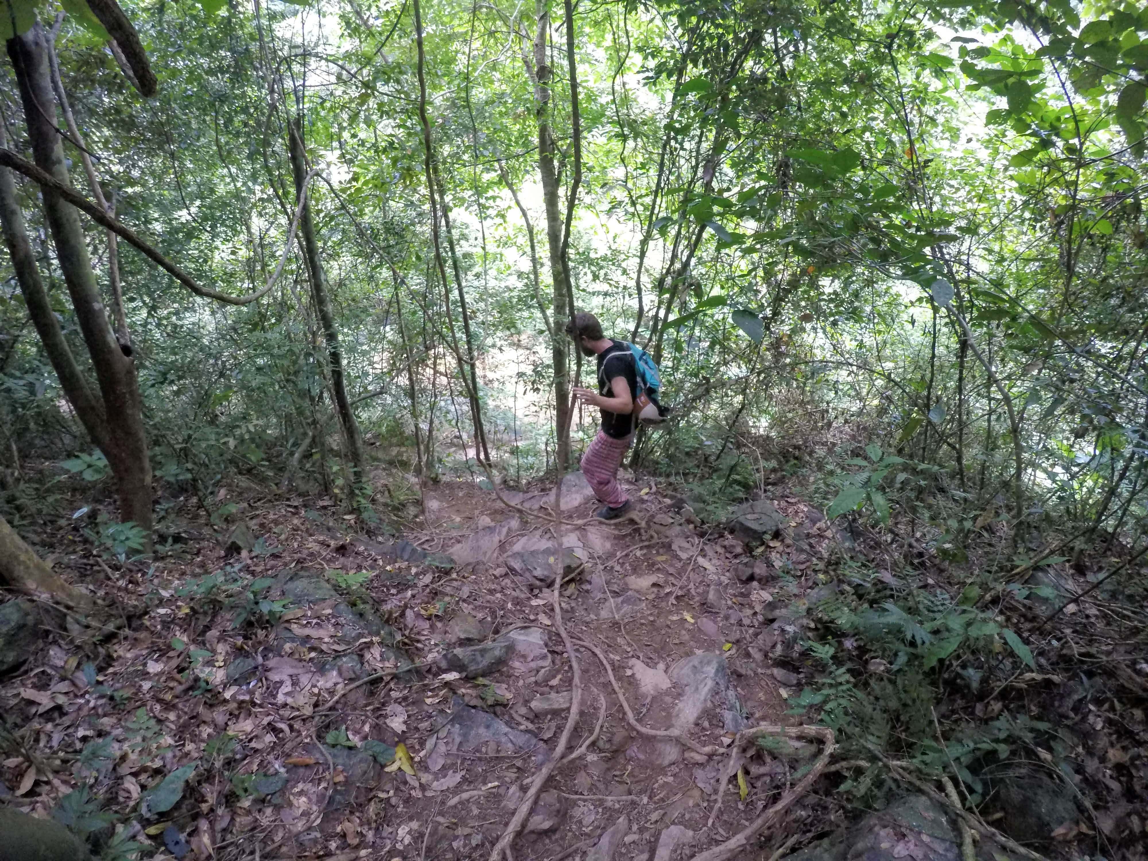 El camino a la cascada desde aquí es un pequeño trekking de 3 km por pura selva. Aunque no está señalizado, es bastante intuitivo. Aún así nos encontramos algunas personas con guía. El único problema es que hace muchísimo calor pero al llegar a la cascada te puedes dar un baño y refrescarte para la vuelta. Además, en el camino también hay una cueva.