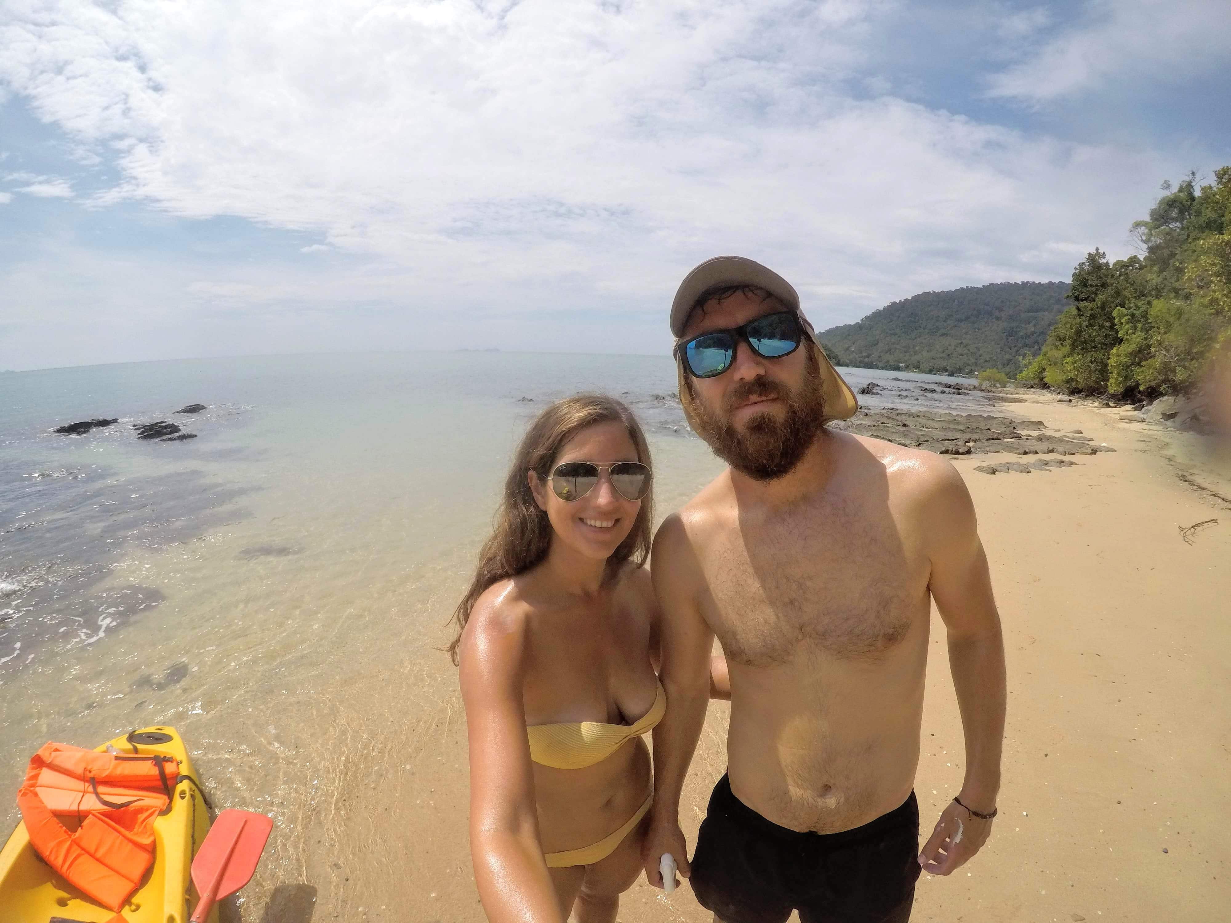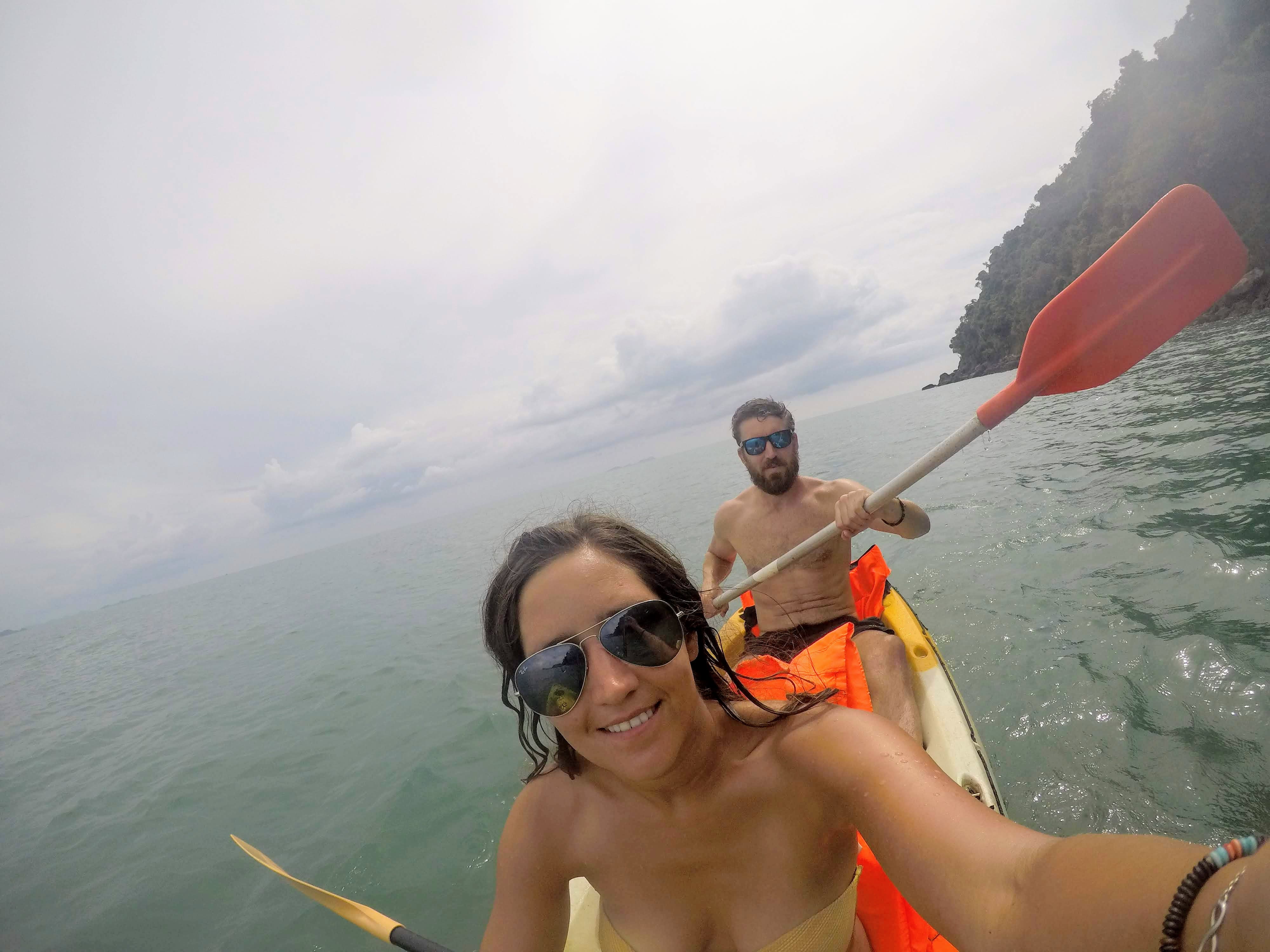 Nos llevamos sandwiches y botellas de agua y nos fuimos remando hasta Koh Kluang, una isla virgen de aguas cristalinas a la que empezamos a llamar «nuestra isla» porque estábamos totalmente solos en ella. La única pena fue que no teníamos gafas ni tubo de snorkel.
