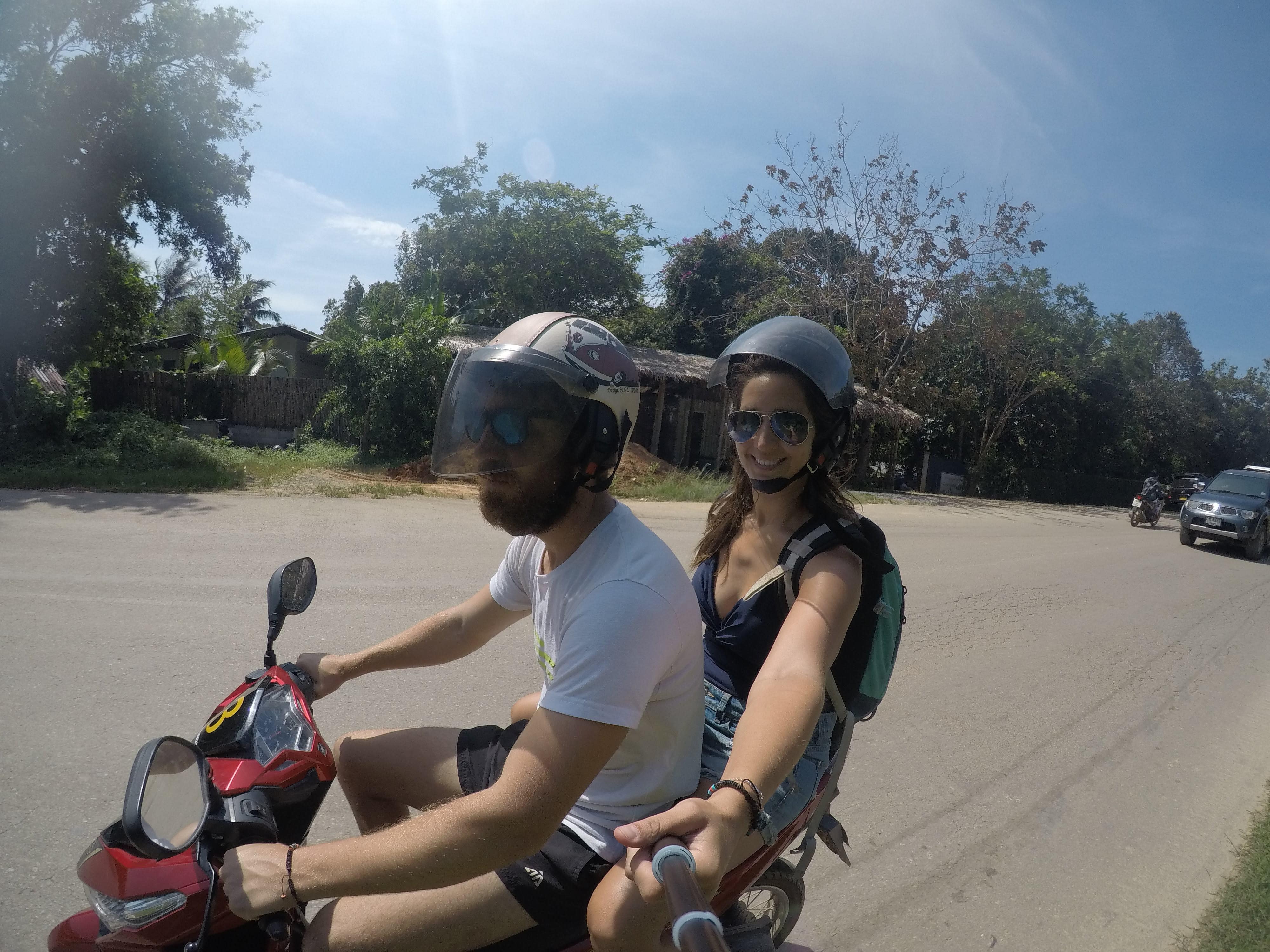 Una de las cosas que más recomendamos es alquilar una moto (150 bahts = 4€ al día) y descubrir las playas de la isla. Principalmente, los turistas se mueven por la costa oeste porque es donde están todas las playas y, por tanto, todos los hoteles y restaurantes. Recorrer esta carretera e ir parando a darte un bañito en cada playa es una pasada.