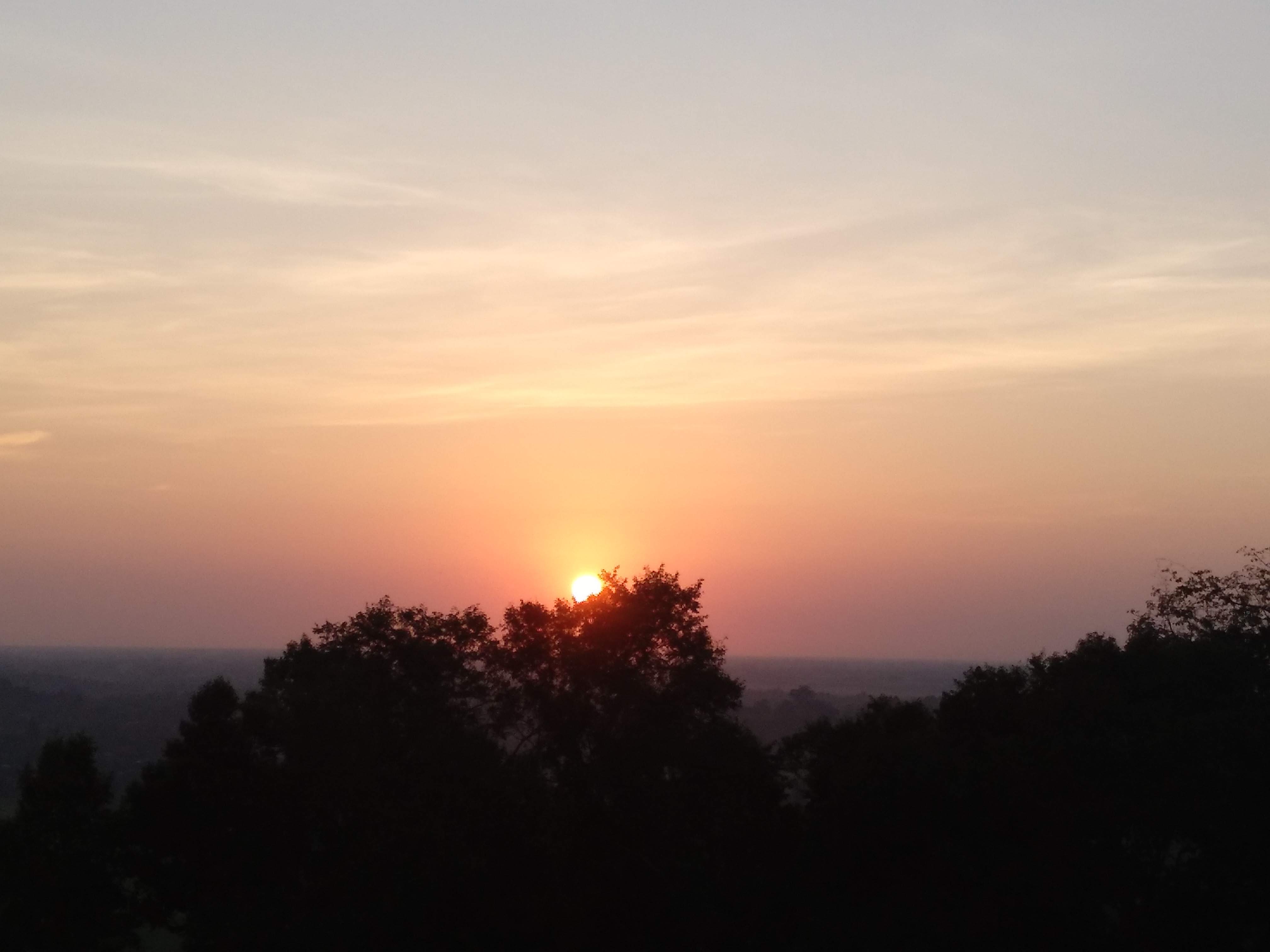 Es un atardecer bonito pero exactamente igual que el que puedes ver en la Pedriza en verano. Nosotros, antes de subir, pensábamos que veríamos el sol caer sobre los templos, pero está todo lleno de árboles así que no se ve nada espectacular.