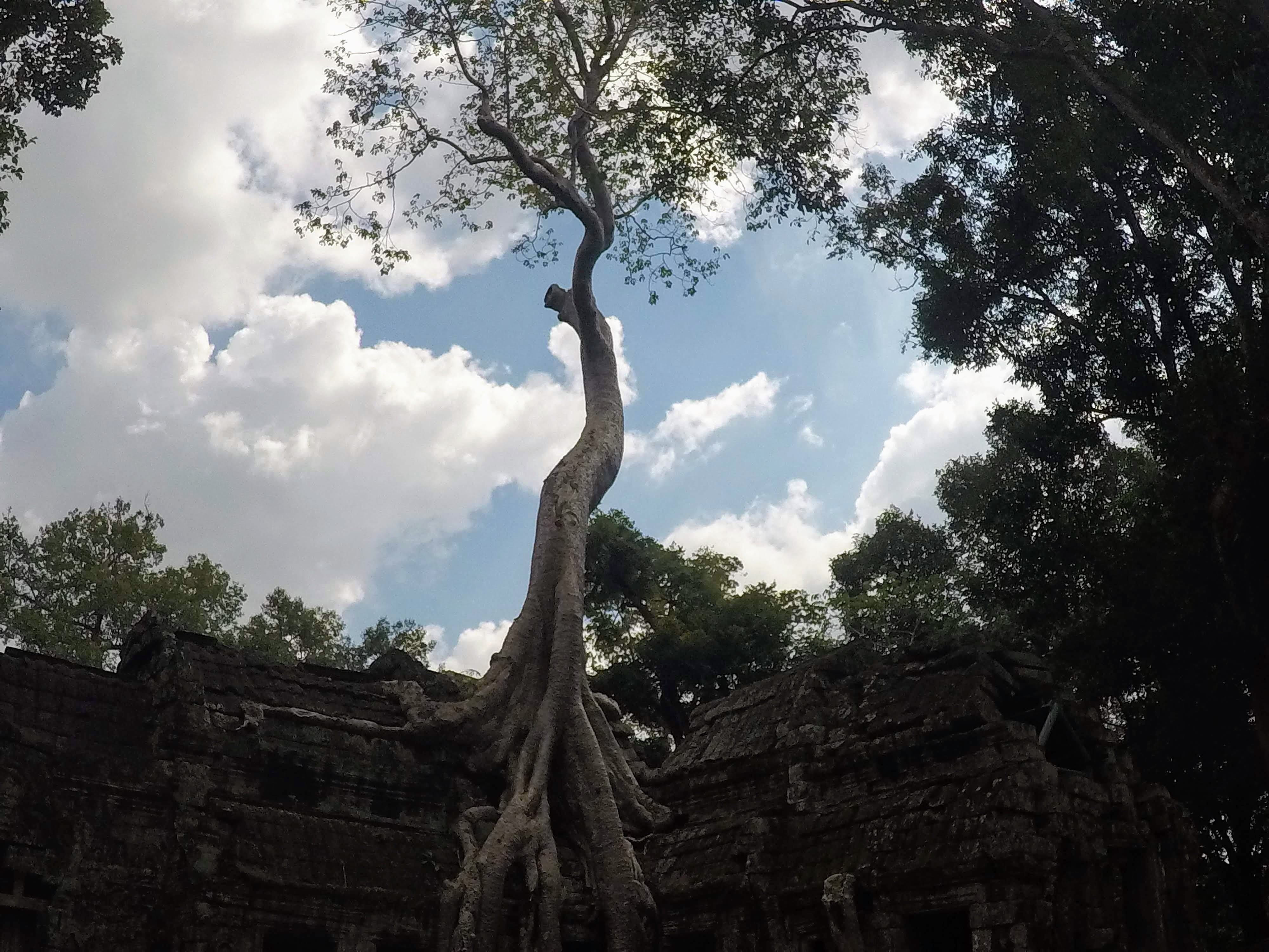 Este es el famoso templo donde se rodó la película de Tomb Raider. Este templo quedó «engullido» por la jungla tras el abandono de Angkor. Pero justamente esa peculiaridad es la que lo hace tan especial. Las enormes raíces que serpentean por dentro y fuera del templo ofrecen una imagen única.