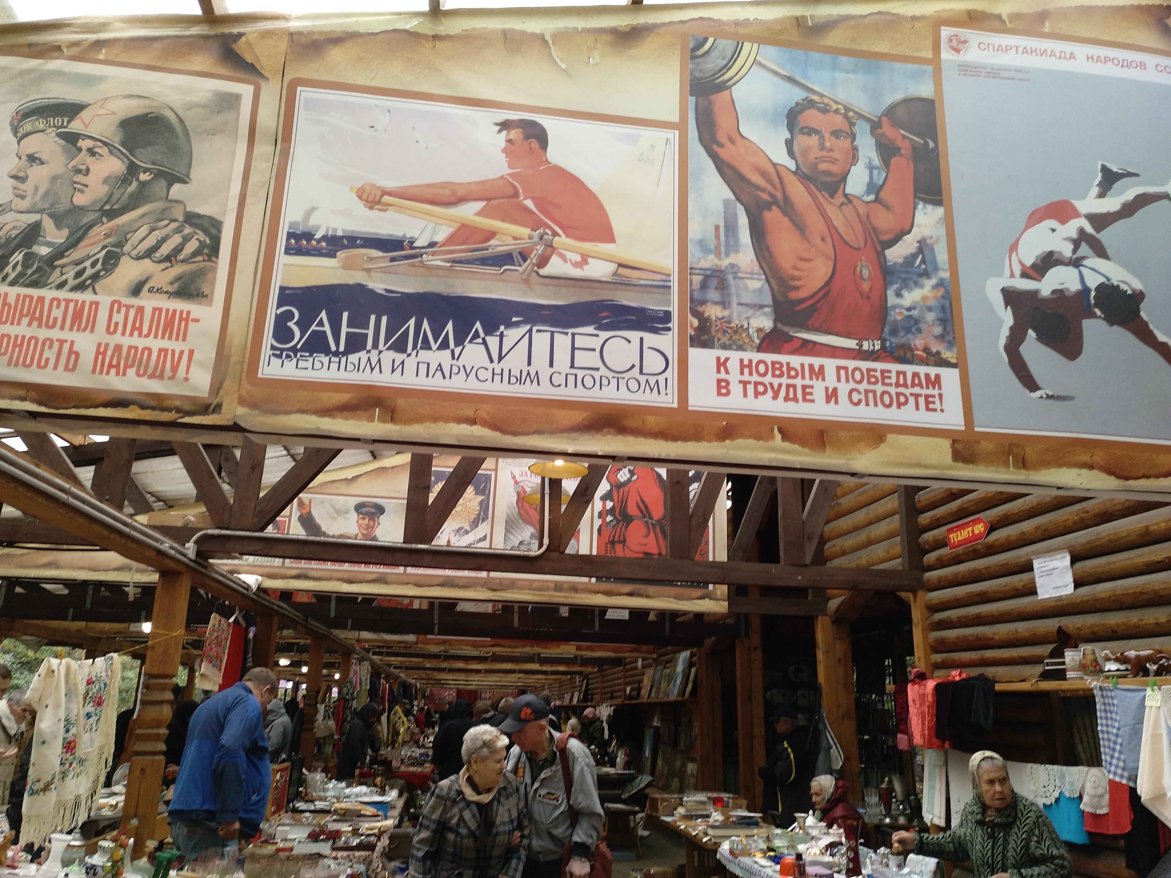 El domingo que pasamos en Moscú decidimos ir a visitar el Mercado Izmailovo porque habíamos leído que lo recomendaban en varios blogs y guías. Aunque lo suelen definir como un mercado de souvenirs, es mucho más. Es un gran mercado de segunda mano -parecido al rastro de Madrid- donde puedes encontrar de todo aunque es cierto que abundan las matrioshkas, los puestos de cámaras antiguas y de todo tipo de cosas soviéticas (uniformes, imanes, posters…)