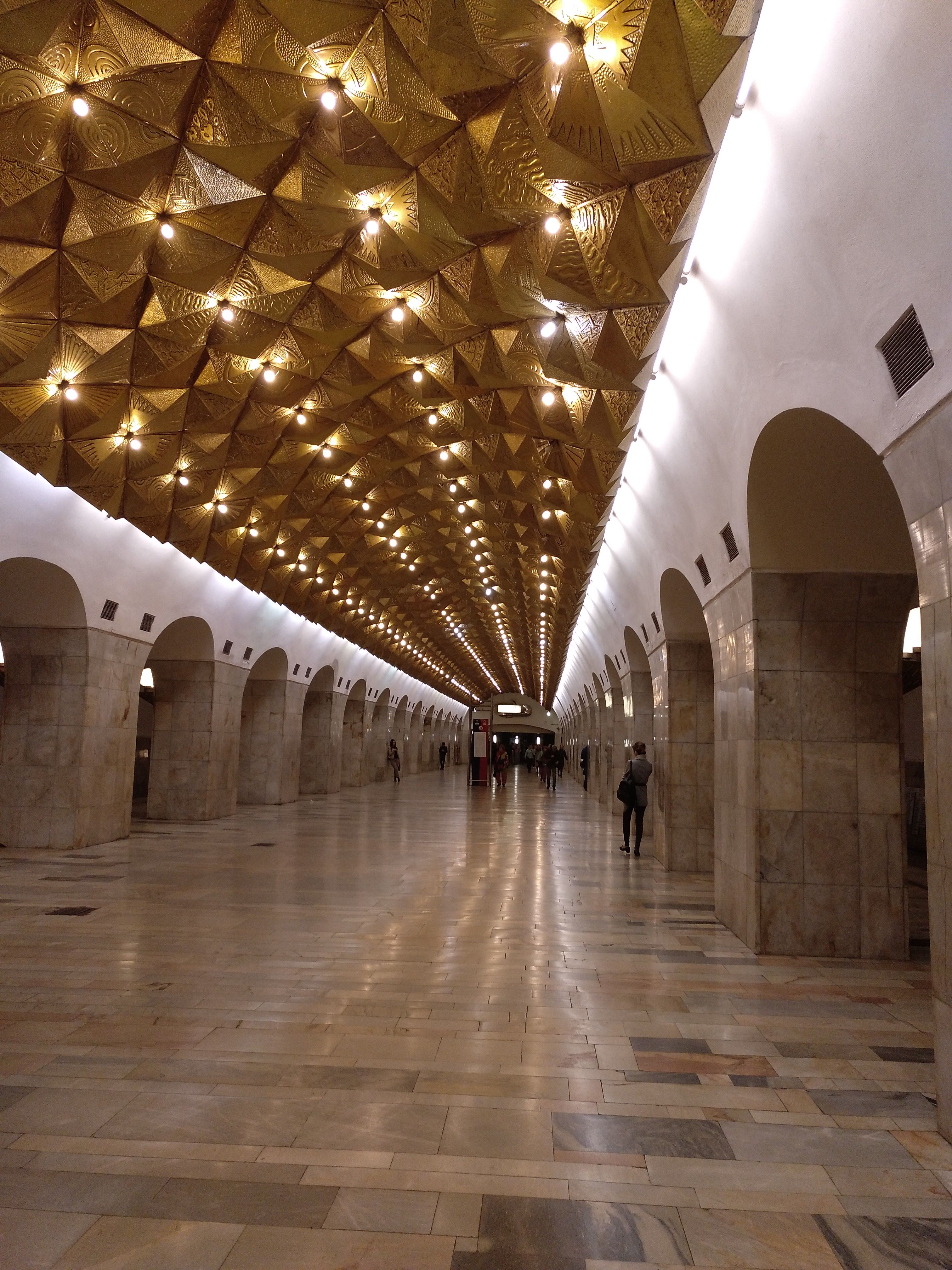 Como ya sabréis, el metro de Moscú es espectacular. Algunas estaciones parecen un museo ya que te encuentras columnas, vidrieras, esculturas, lámparas y mosaicos junto a cualquier andén.